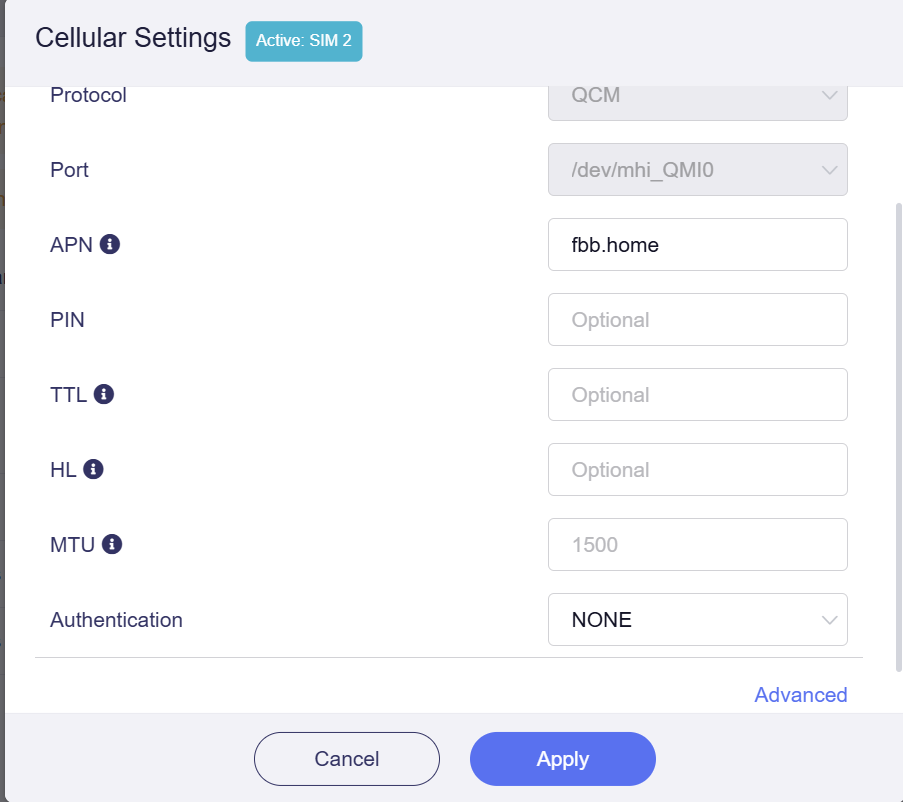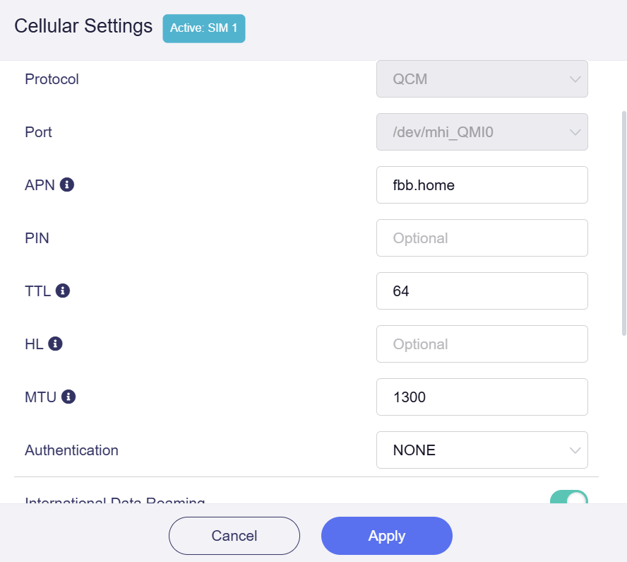 And could you share with me a screenshot showing the cellular configuration of the T-mobile router? Just want to see if there is any special config. Thanks