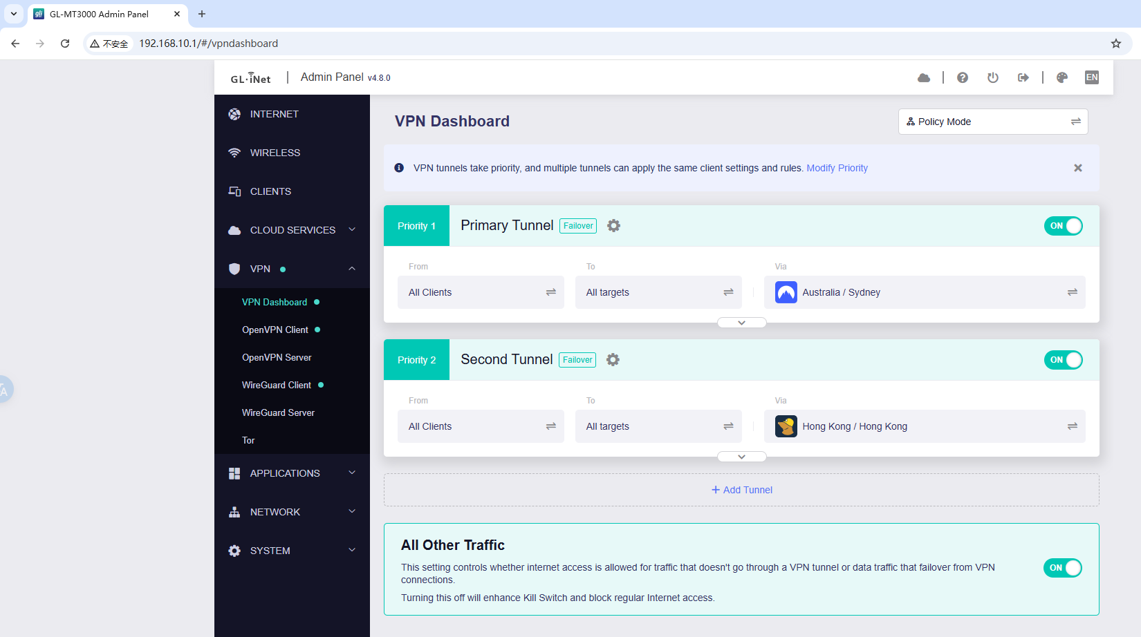 I’ve got a couple of VPN’s setup on my GL-MT3000 which I use for travel. They were working fine but not since I upgraded the firmware 4.8.0. The VPN’s work perfectly fine on my personal device. I’ve got a NordVPN account setup, Wireguard server that I selfhost and a Wireguard server on my UniFi Cloud Gateway Fiber - none of which work and get stuck on “Connecting”.