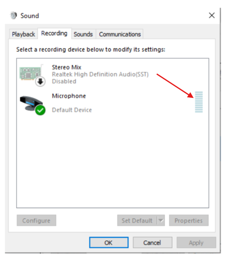 Microphone is working fine on my client laptop (31% volume and i replay test sample):