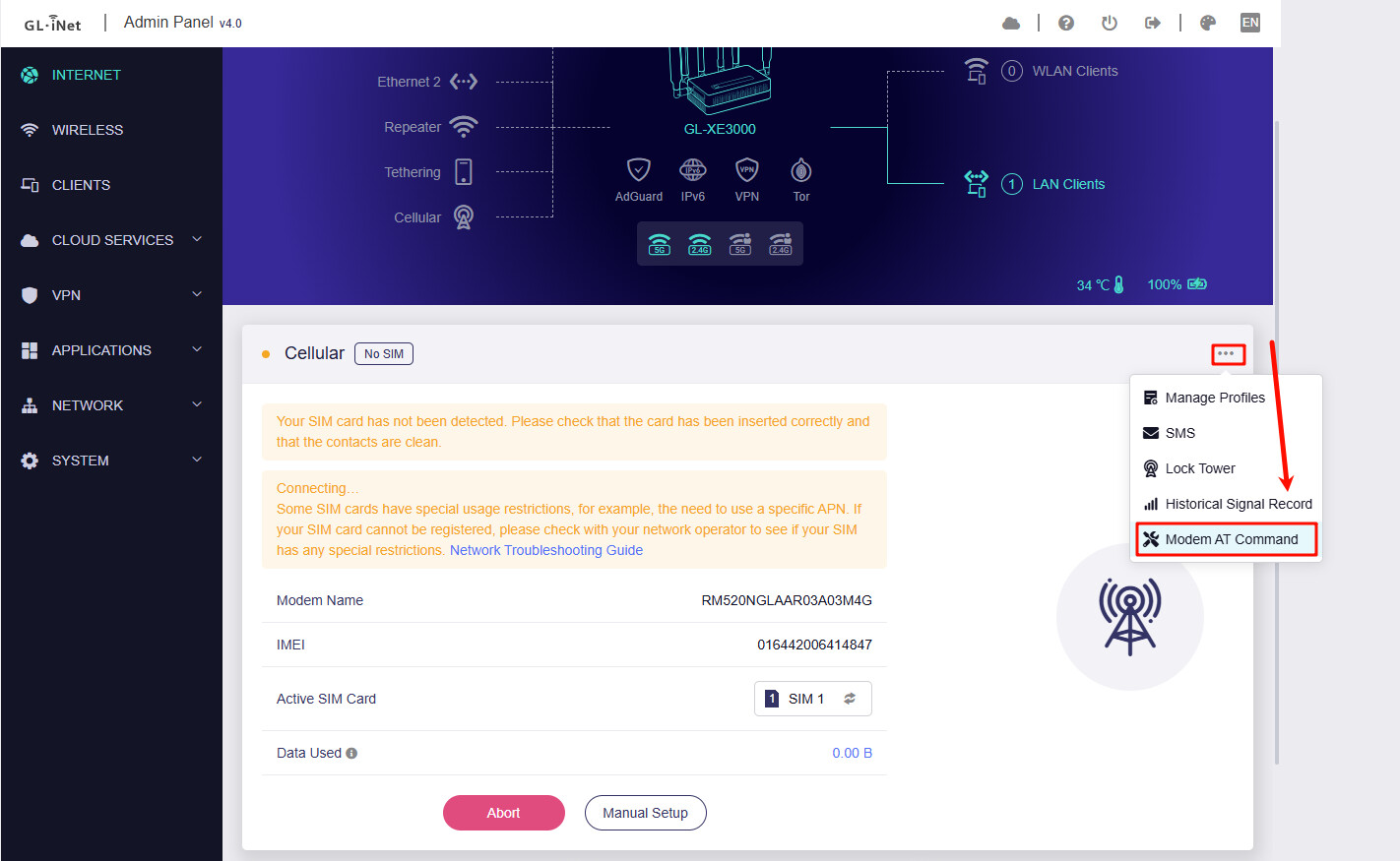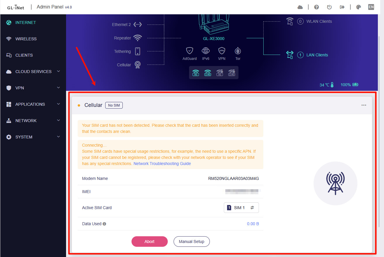 Additionally, we've noticed the Wi-Fi repeater appears to be continuously attempting to search for Wi-Fi networks. If you don't need it right now, click “Abort” to stop it.
