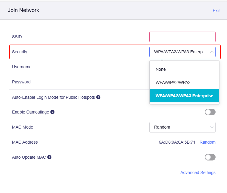 Hi all, I have purchased GL-AXT1800 ( slate AX) and want to connect to an WPA enterprise WiFi however I am not seeing the Security combo-box in the settings admin panel where I can select WPA3 Enterprise according to the online article “How to connect to EAP Network” ( Connect to EAP network - GL.iNet Router Docs 4 ) !