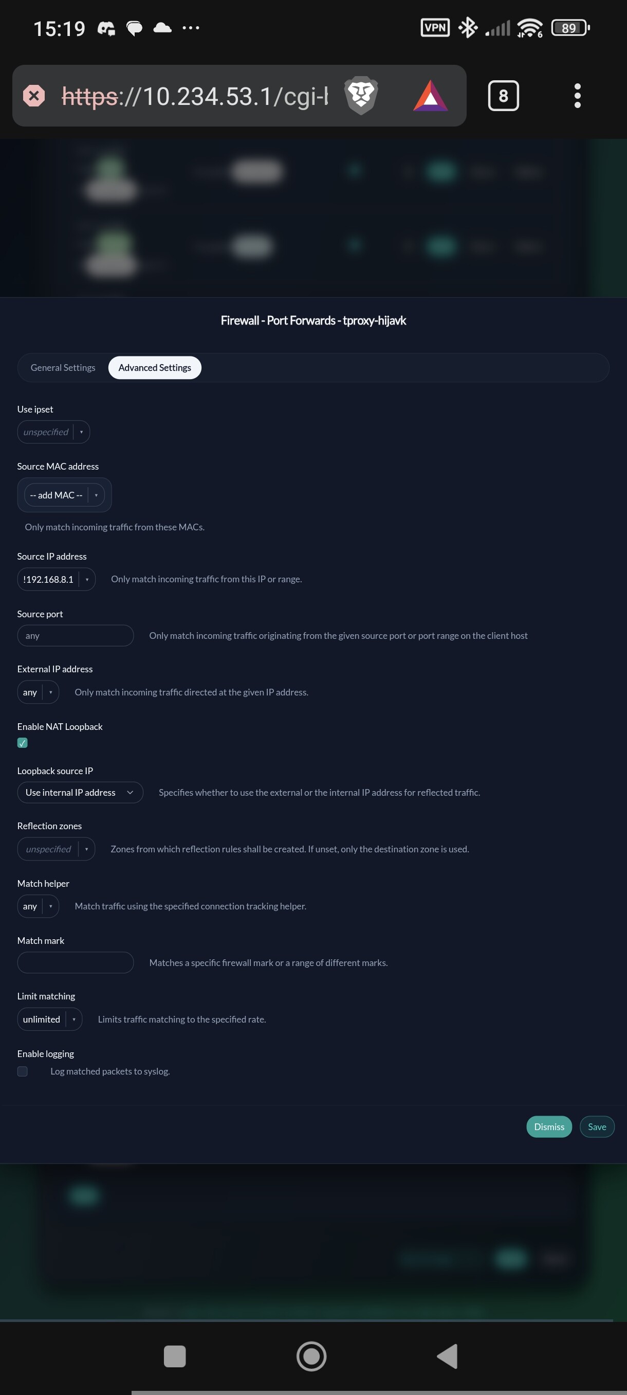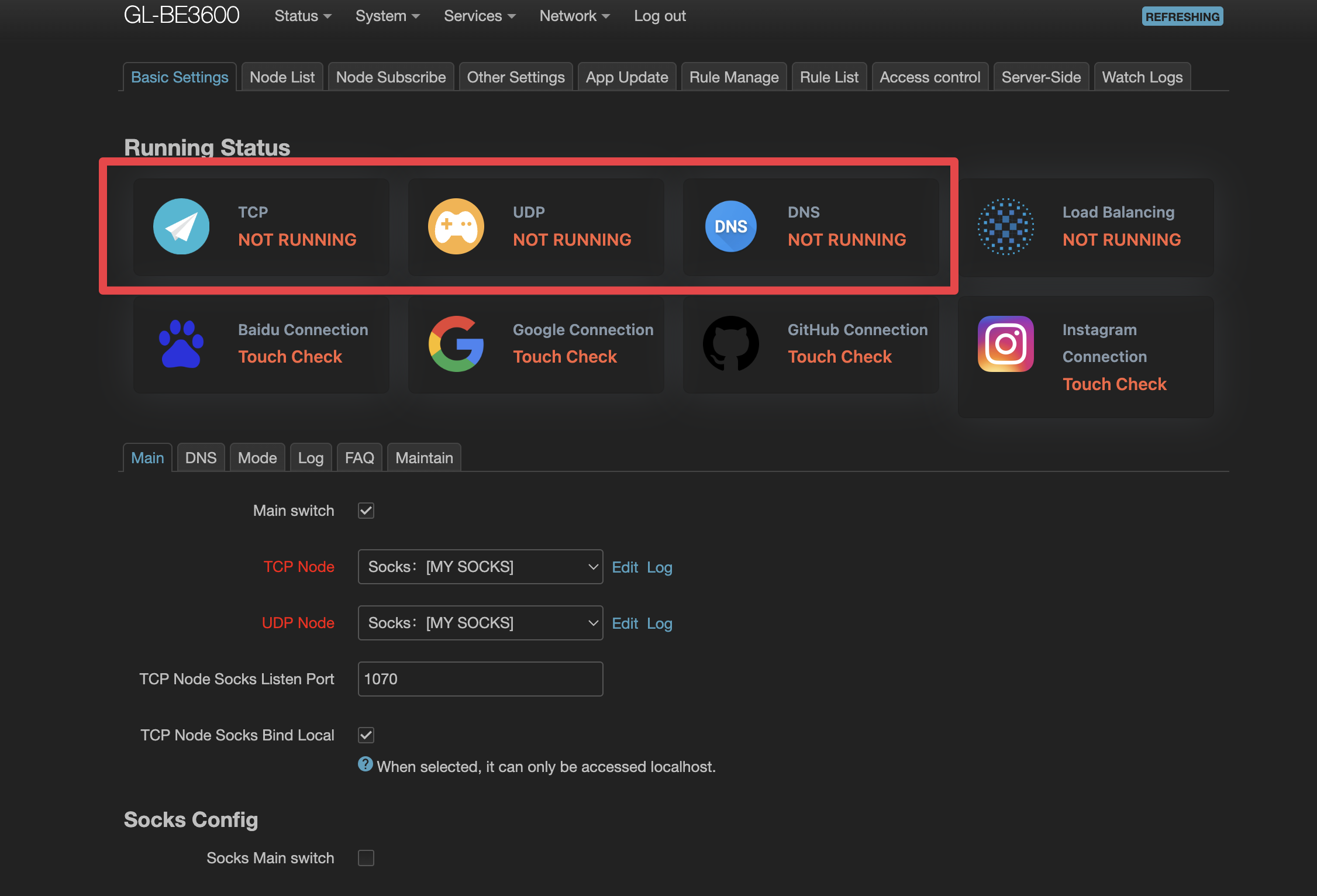 I’m trying to route all internet traffic from all devices on my LAN through a SOCKS5 proxy using my router. I’m using a GL.iNet GL-BE3600 router running OpenWRT 23.05-SNAPSHOT. The router’s LAN IP is 192.168.8.1 and the LAN subnet is 192.168.8.0/24.