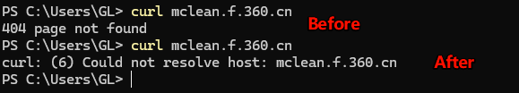 curl: (6) Could not resolve host: mclean.f.360.cn