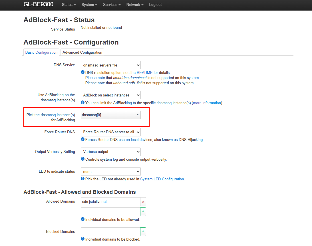 Configuring luci-app-adblock-fast.