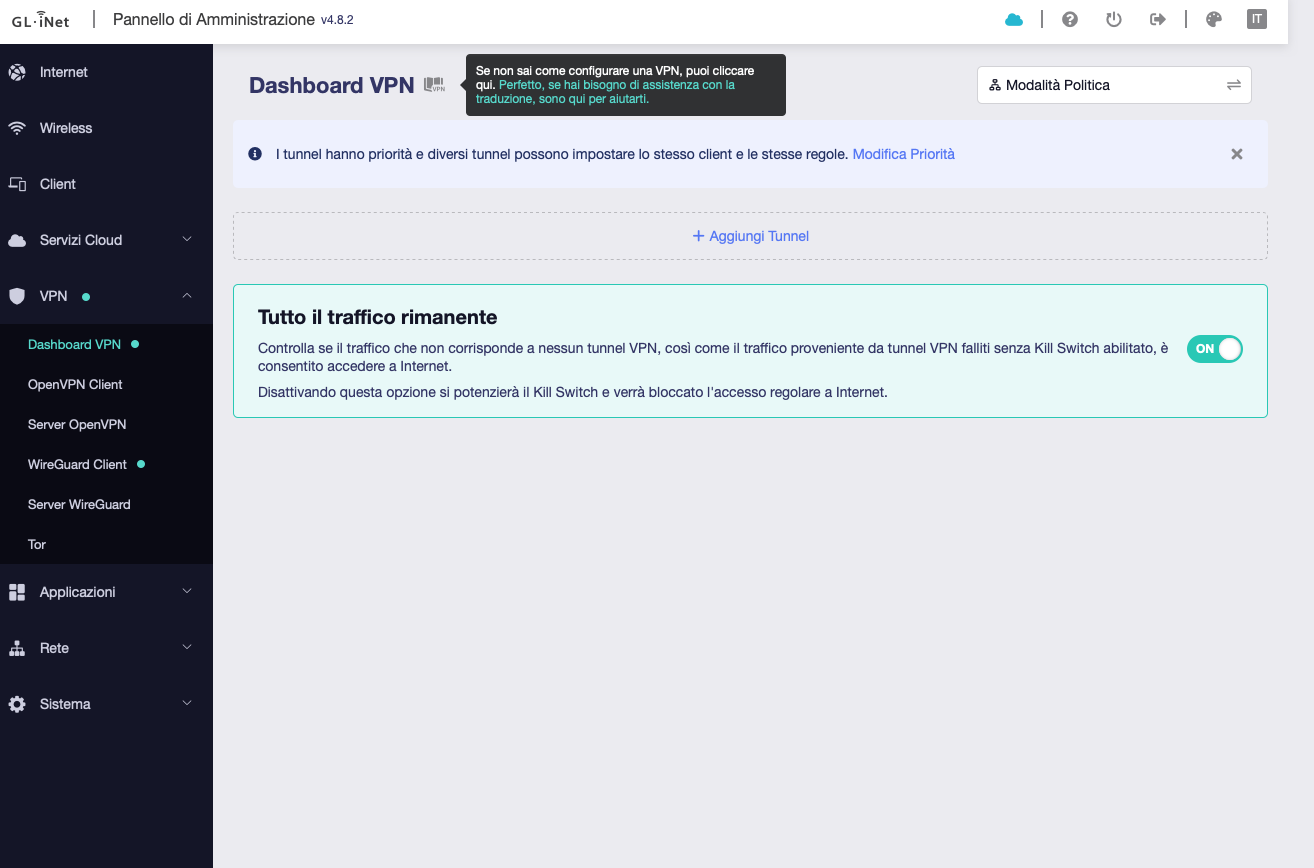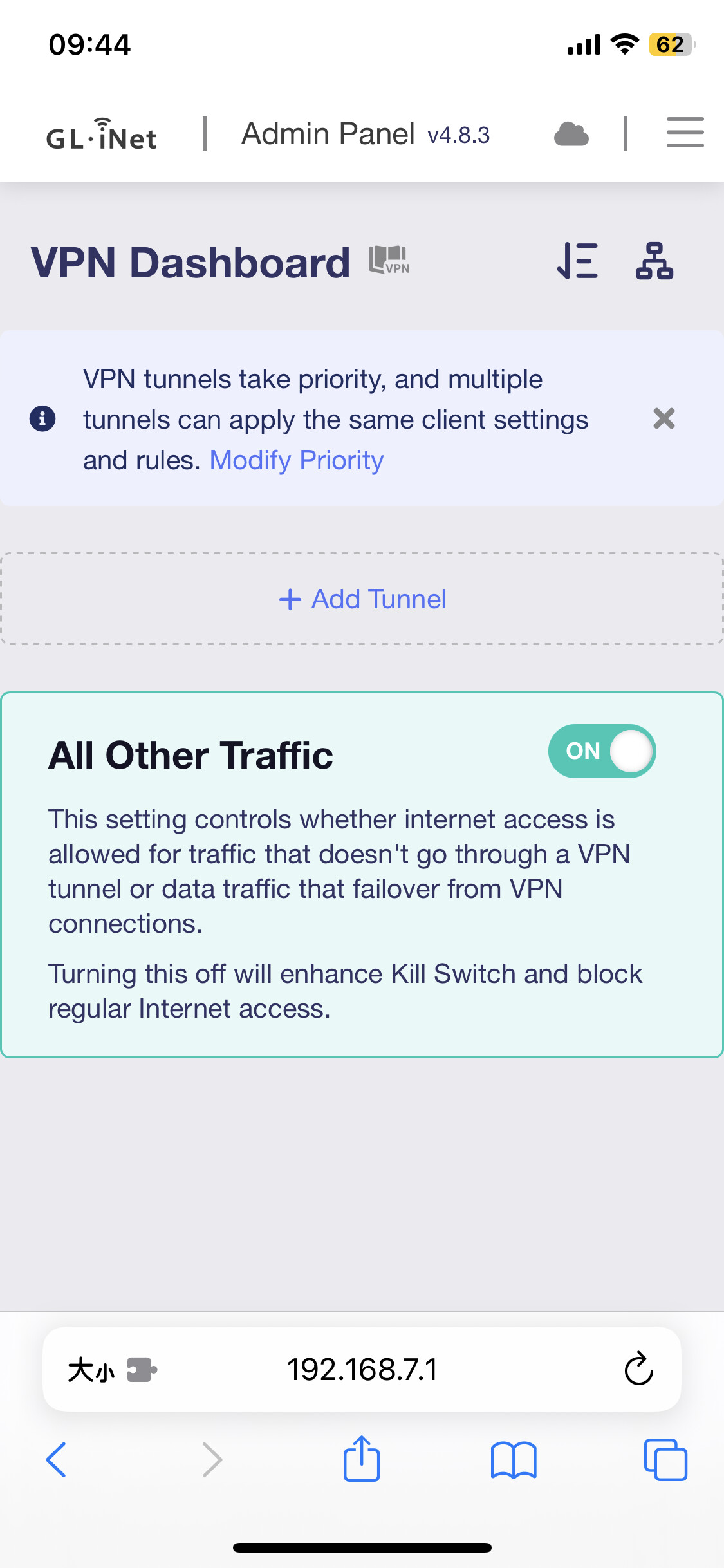The Flint 2 VPN dashboard menu doesn't display correctly when using Safari 16.6. The HTML page is incompatible with older browsers.