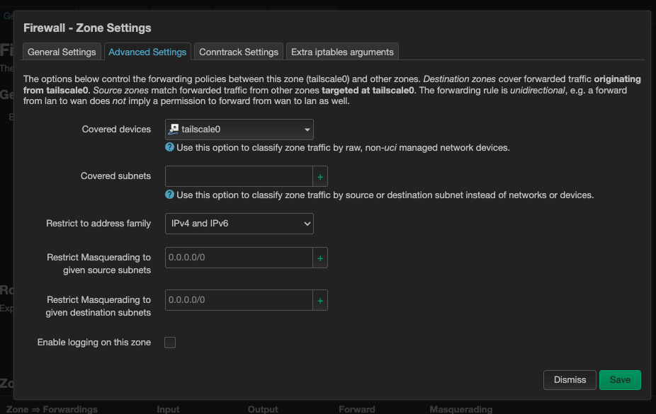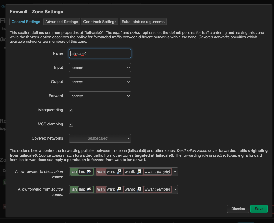 On a separate topic - I went ahead and followed this wiki guide, set up a new interface, added the forwarding rules and now Tailscase connection becomes unstable. Also, when I go in the interface overview, the “tailscale” interface I set up, restarts every 2-3 seconds. Interestingly enough, the connection is very laggy, but I do manage to open a page or two.