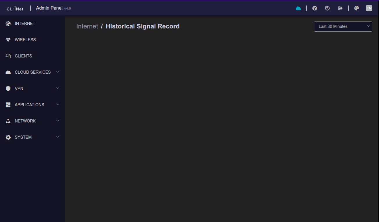 Router E750 does not support displaying historical signals. There was a problem in v4.7 and we fix it in v4.8.