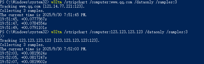 w32tm /stripchart /computer:123.123.123.123 /dataonly /samples:3