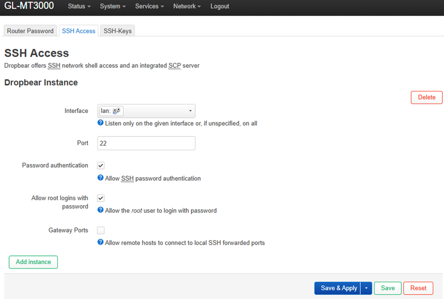 Enable SSH and SCP access in the GL.iNet Panel