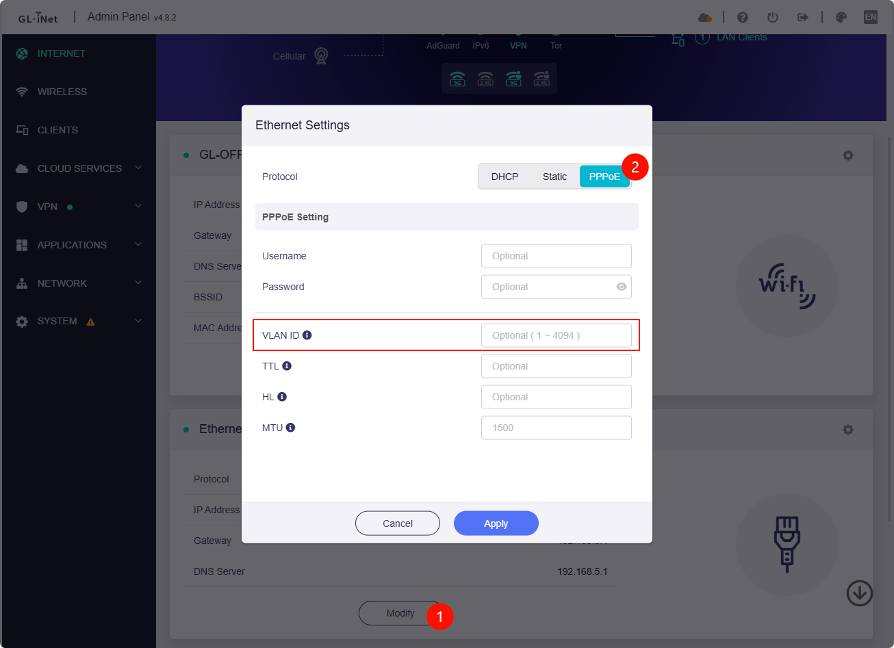 I want to configure ‘PPPoE over VLAN’ but unable to locate that feature.