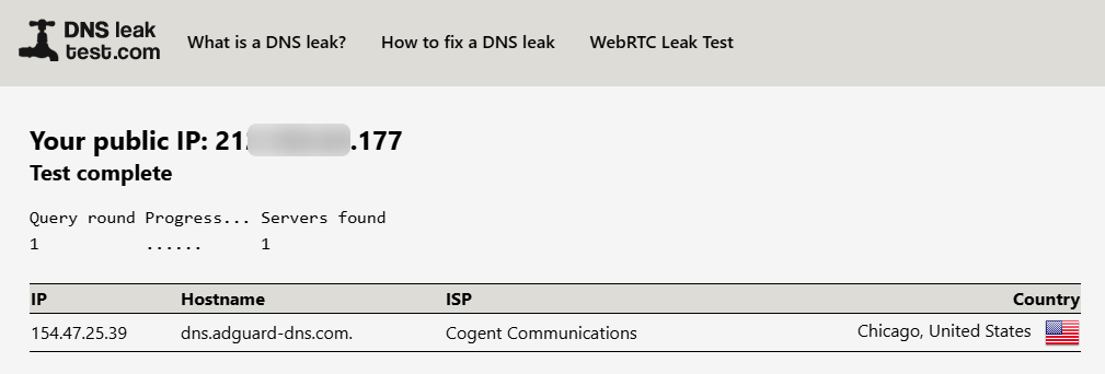 10. Verify that the ADG VPN tunnel is working properly, and there is no DNS leak: