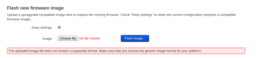 that screenshot looks like luci, if it is not accepting image follow instruction in debrick tutorial and falsh snapshot factory image via uboot not luci: