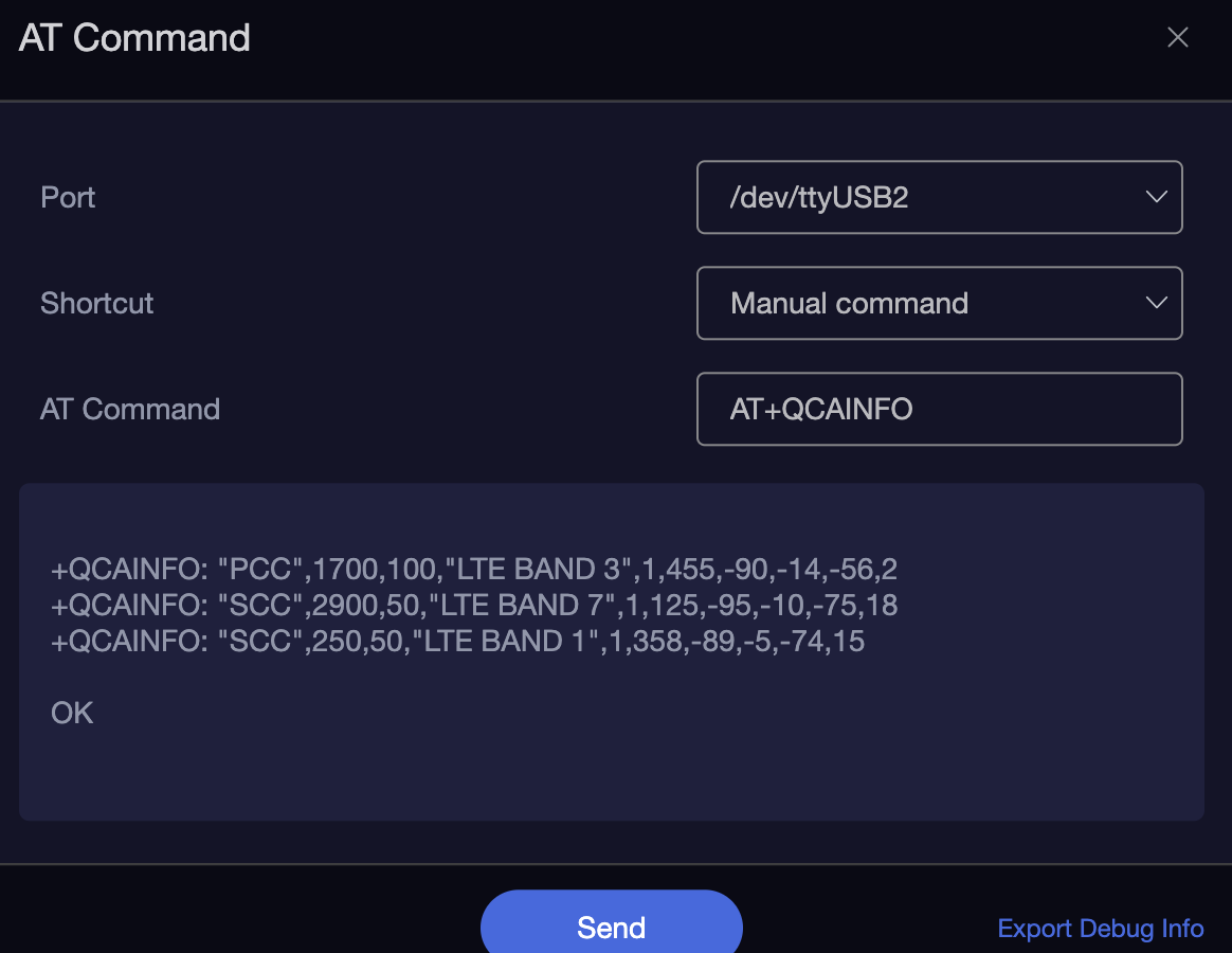 Also i didn't find GUI evidence that modem is using carrier aggregation, it showing only a Band 3 or Band 7 connection only in 4G Mode, however manual AT command showing that 3 Bands aggregated.