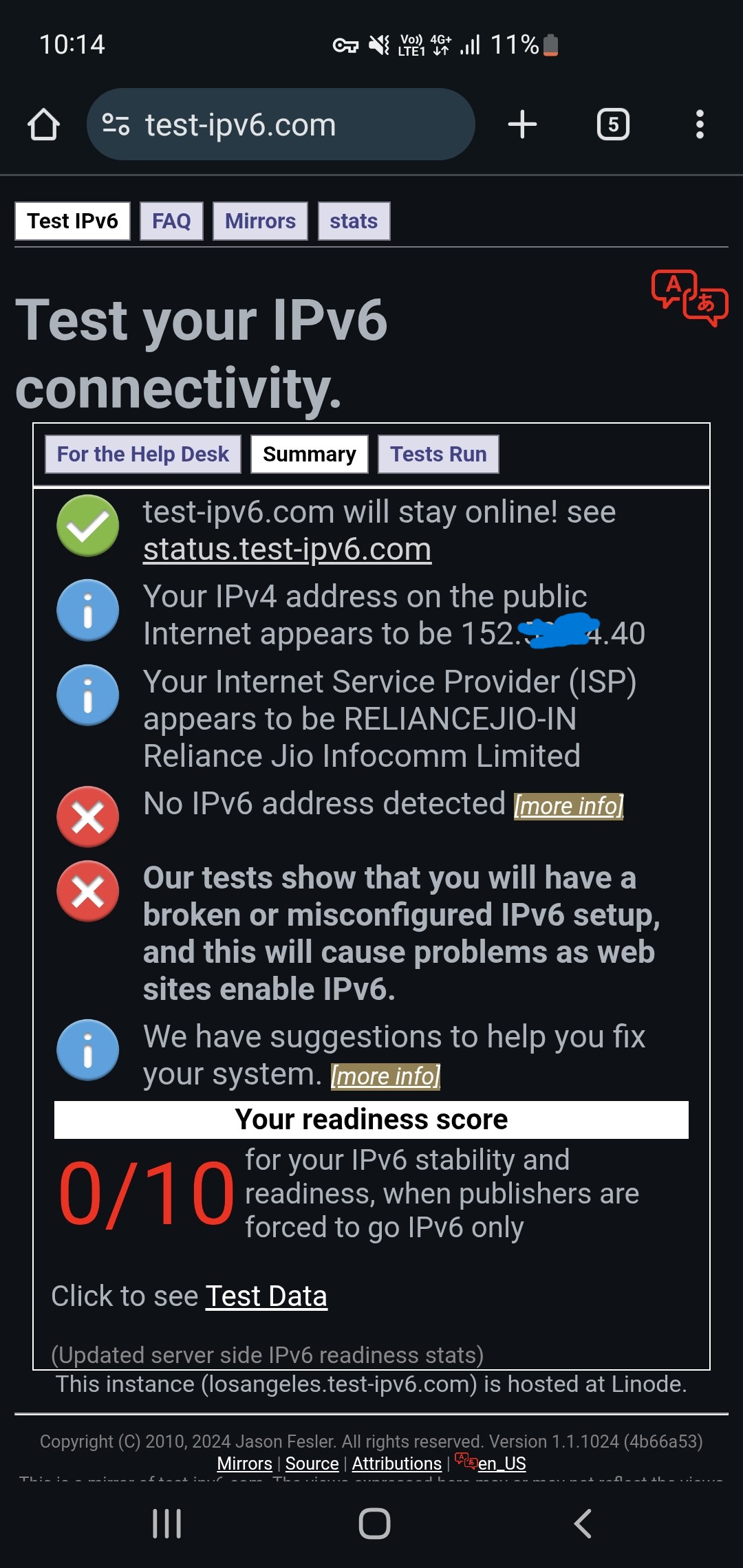But when I connect to WireGuard using mobile data or any other external internet connection → IPv6 does NOT work.