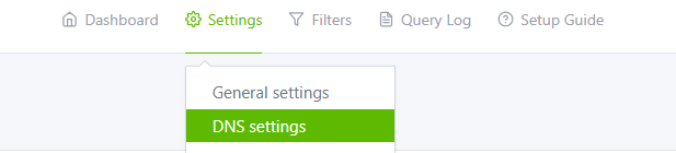 - Click the Settings Page to go to the AdGuard Home settings page, and brower to Setting - DNS settings.