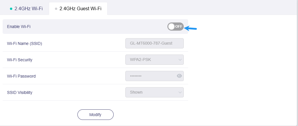 - customized toggle button guest2gwifi internet : J1 : OFF | J2 : OFF | J3 : OFF