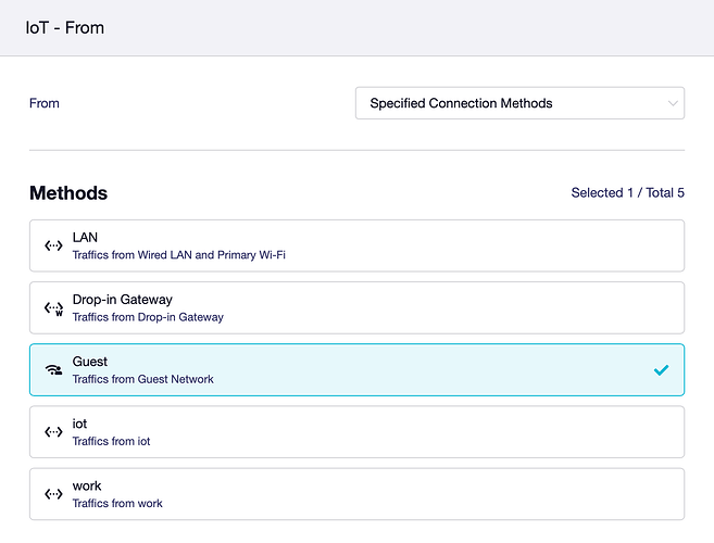 Worths mentioning that I installed 4.8 for the updated VPN dashboard and that on the Specified Connection Methods, the guest and iot/work methods have a different icon. See bellow: