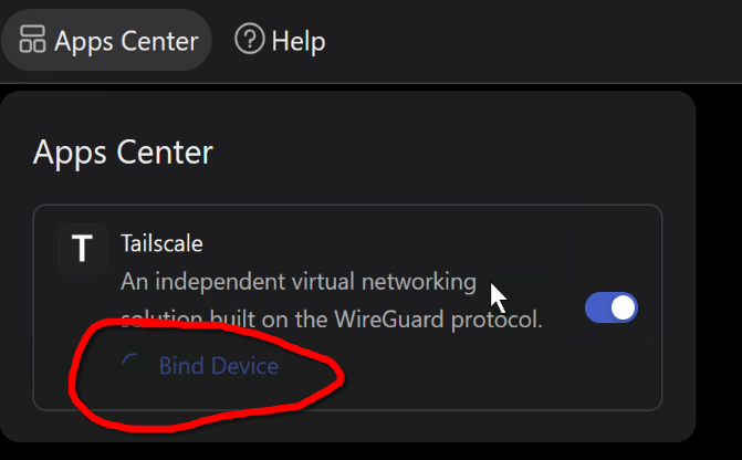 Now the Bind device link is working correctly and redirecting me to the tailscale login page.