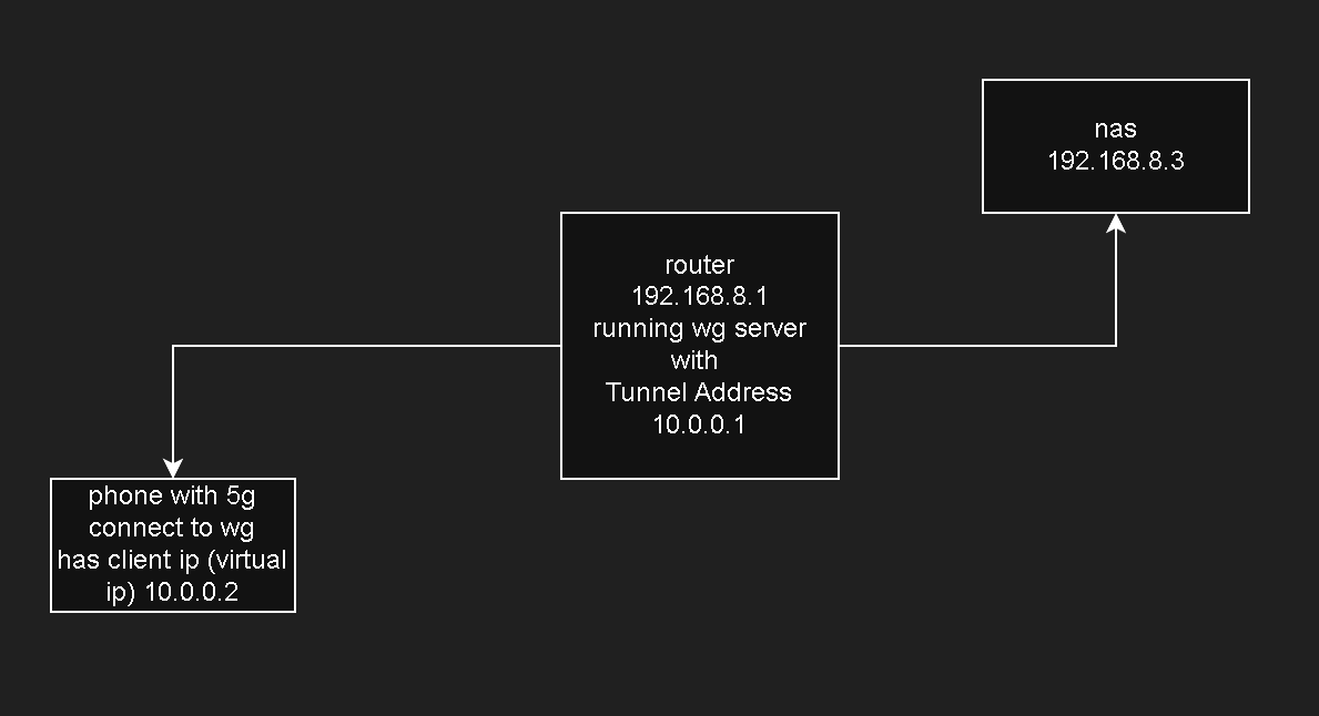 - Devices: The WireGuard server, the mobile client, and any LAN devices you are trying to reach.