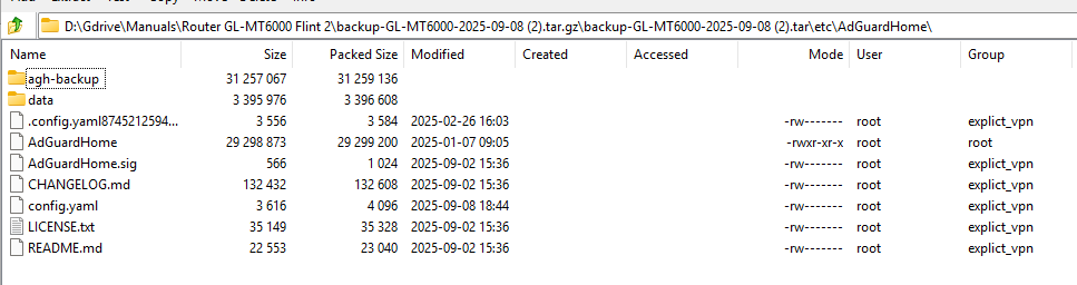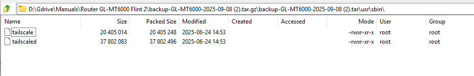 PS One more thing, if I now export the config from Luci as an MT6000...tar.gz file, this file reports “Unexpected end of data : backup-GL-MT6000-2025-09-08.tar” when I try and open it using 7zip on windows. I get the same problem if I check the file using gunzip -t on linux “unexpected end of file”
