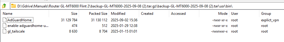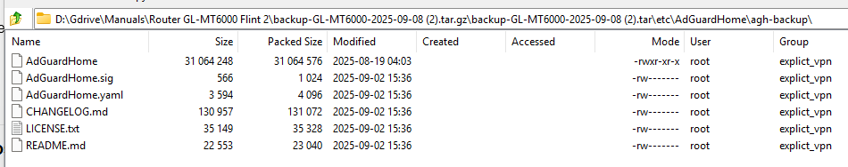 Yeah, you're backing up the binaries for AGH, data files, a related backup dir & TailScale. If /usr/bin/
