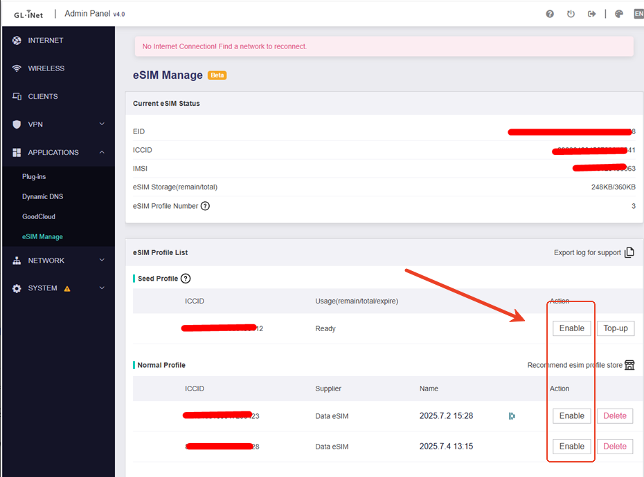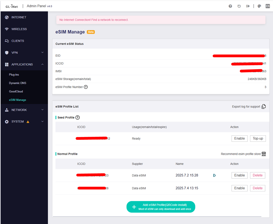 Very frustrating situation here. I use a brand new Mudi V2 with an eSim from Gl-inet partner, EIOT. The SIM card is not registering on the Mudi. It shows "no service". I contacted EIOT, they told me to use bicsapn as APN setting. It still doesn't work.