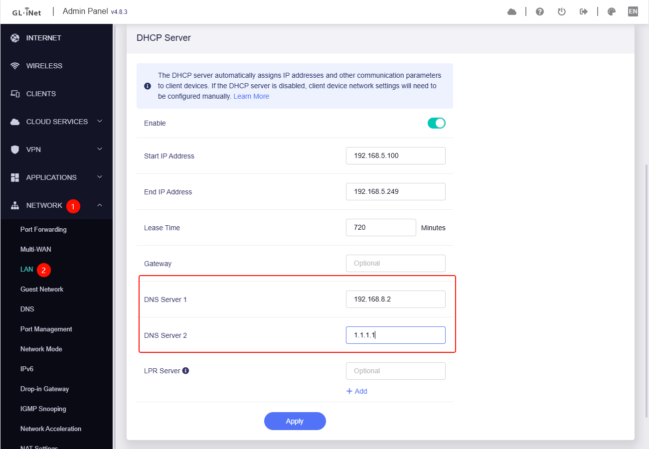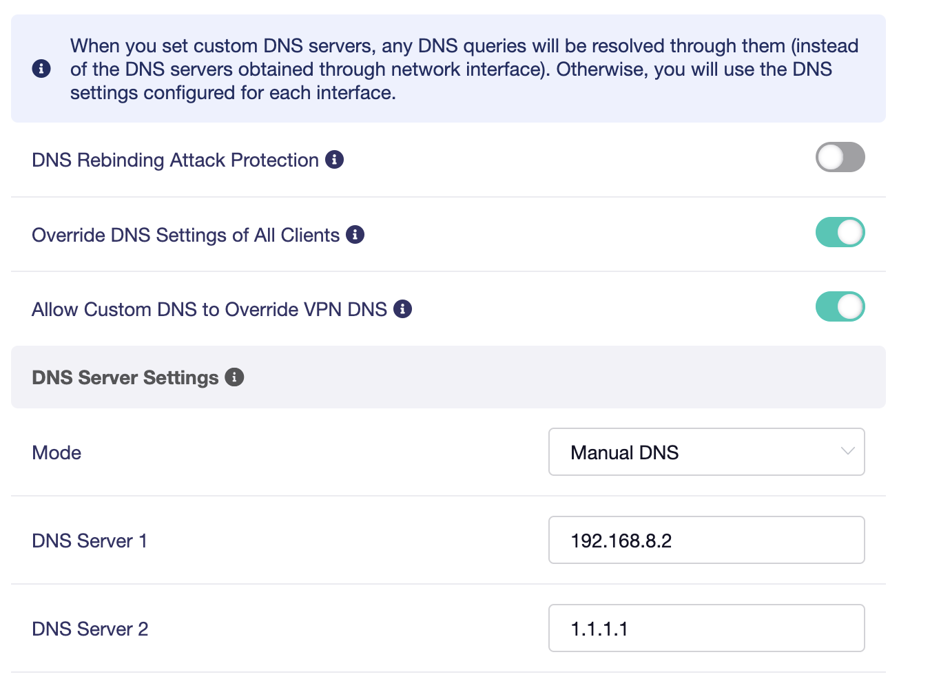 I am setting up a PiHole as a DNS server, but for some reason when I configure the DNS to manual and add my DNS servers, the clients keep the gateway as their DNS provider. Am I missing a configuration? Do I need to reboot my clients?