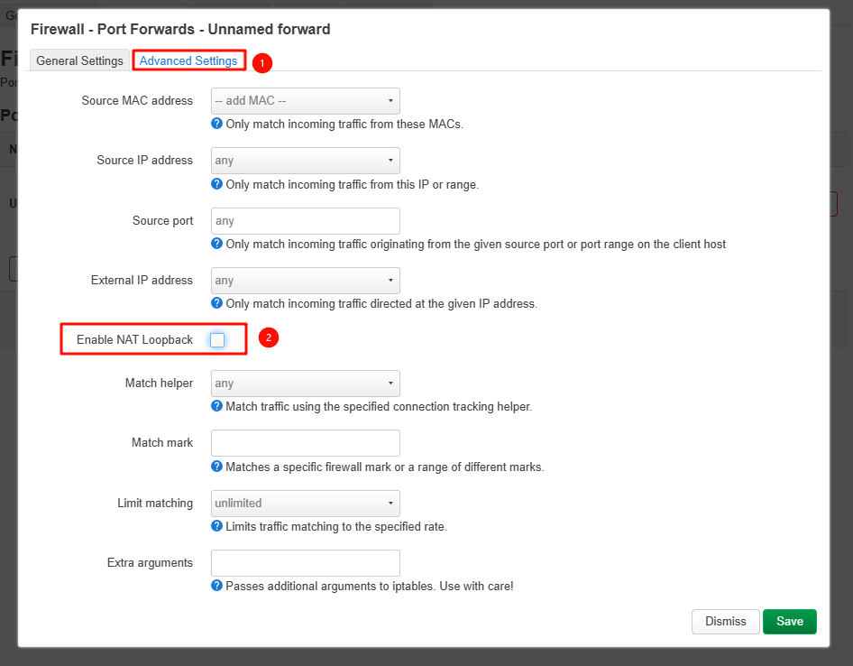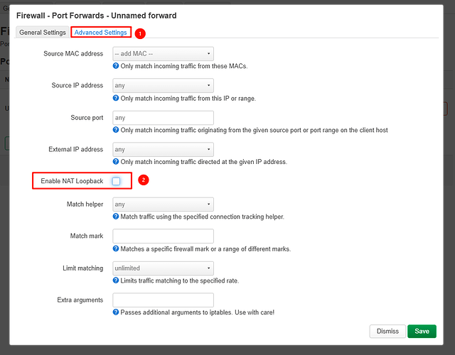 The port forwarding rules did not appear to be configured as suggected. Therefore, we have disabled the 'Enable NAT Loopback' feature.