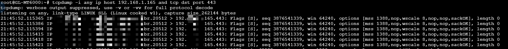 Please also SSH into the router and run the following command to check whether any SNAT or MASQUERADE rules are present: