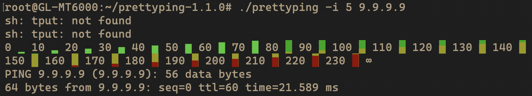 Trying to run prettyping on a Flint 2 to do some very basic networking troubleshooting and can’t find any packages that include tput.