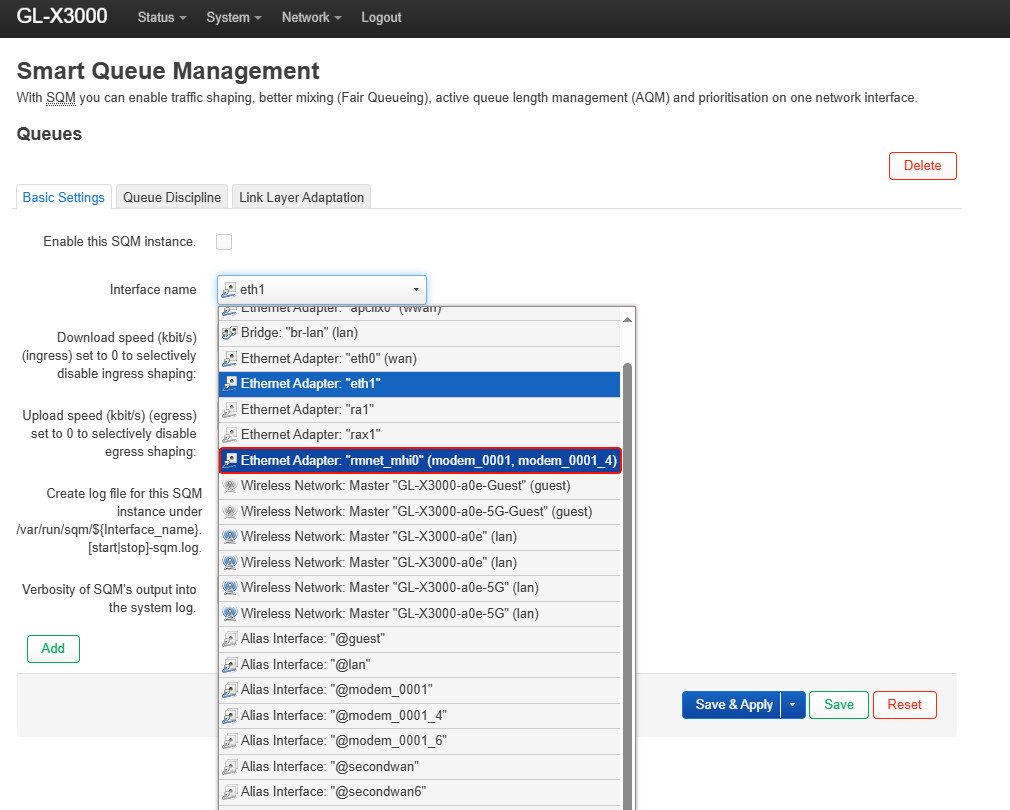 Trying to set up SQM but not sure which is the right interface on X3000 in LUCI. See snapshot. Anyone know which relates to SIM 1?