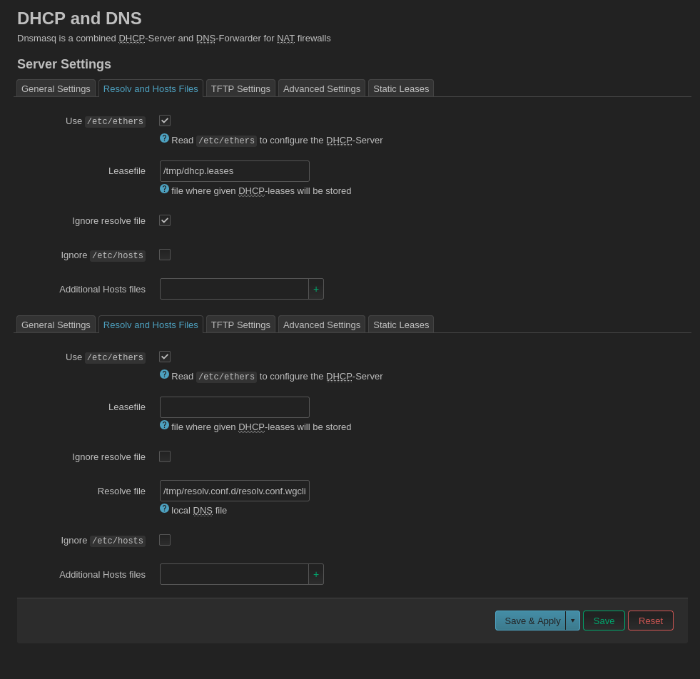 I think the reason why you see multiple sections is because of the change of having multiple dnsmasq instances in op24, the old luci shows it malformed like this.