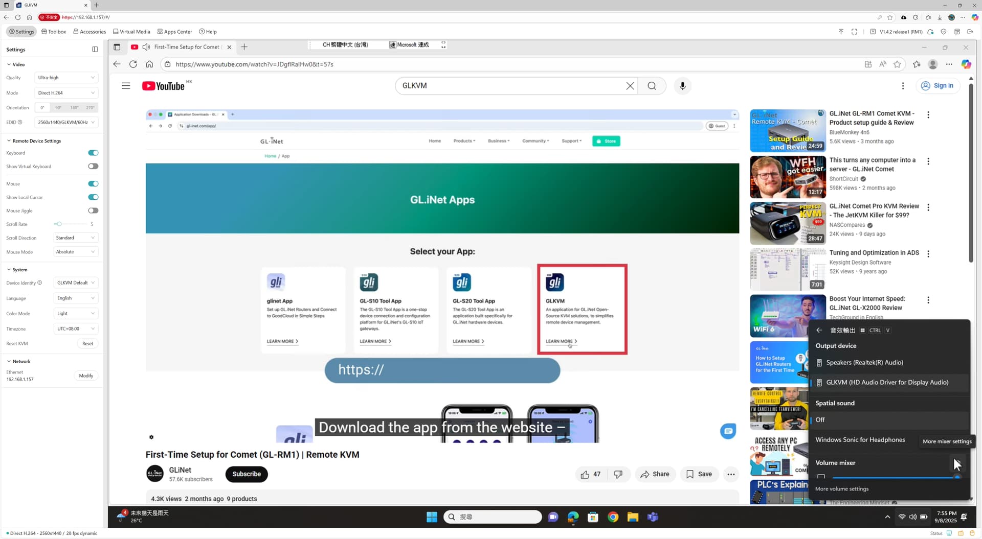 I can’t get remote audio on my local computer and it has no audio option in the section of “Remote Desk Setting”. Below is the screen shot is the remote computer screen show on my local computer and the KVM has been upgraded to the latest version(1.4.2 release 1). I have tried to reboot the KVM but it is still no audio output.
