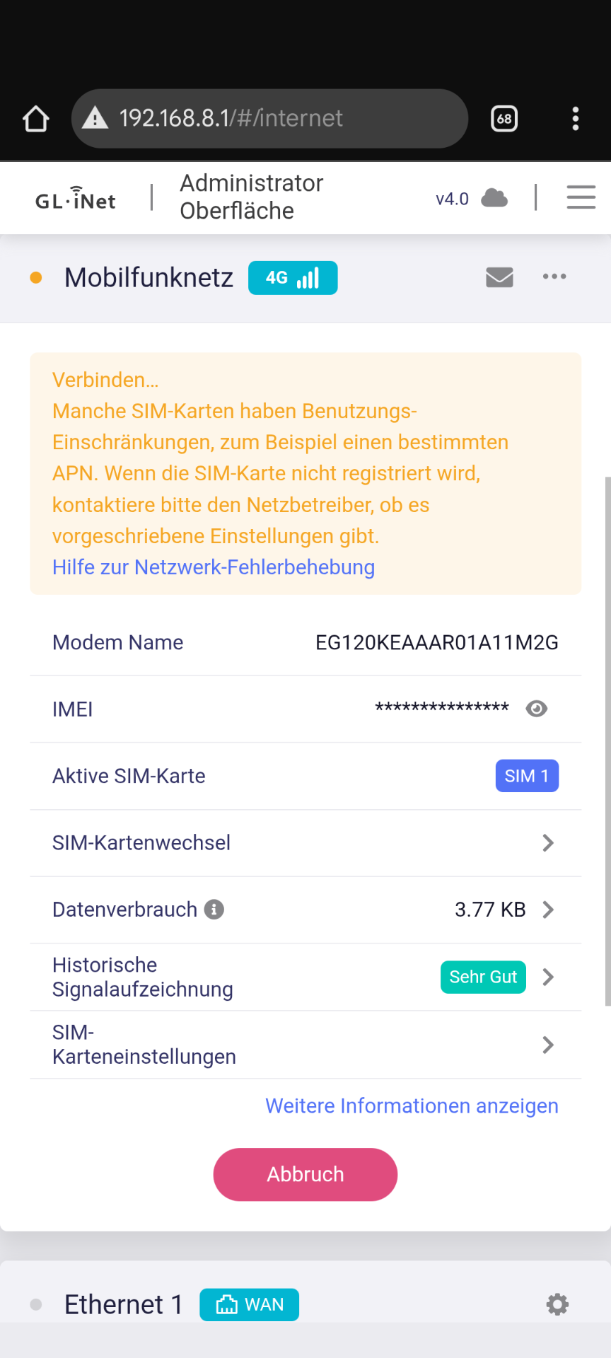 APN is correct and Sim was working on previous Beta. Maybe the Modul Software is wrong? But i cant find the Option to upgrade anymore in Webui…