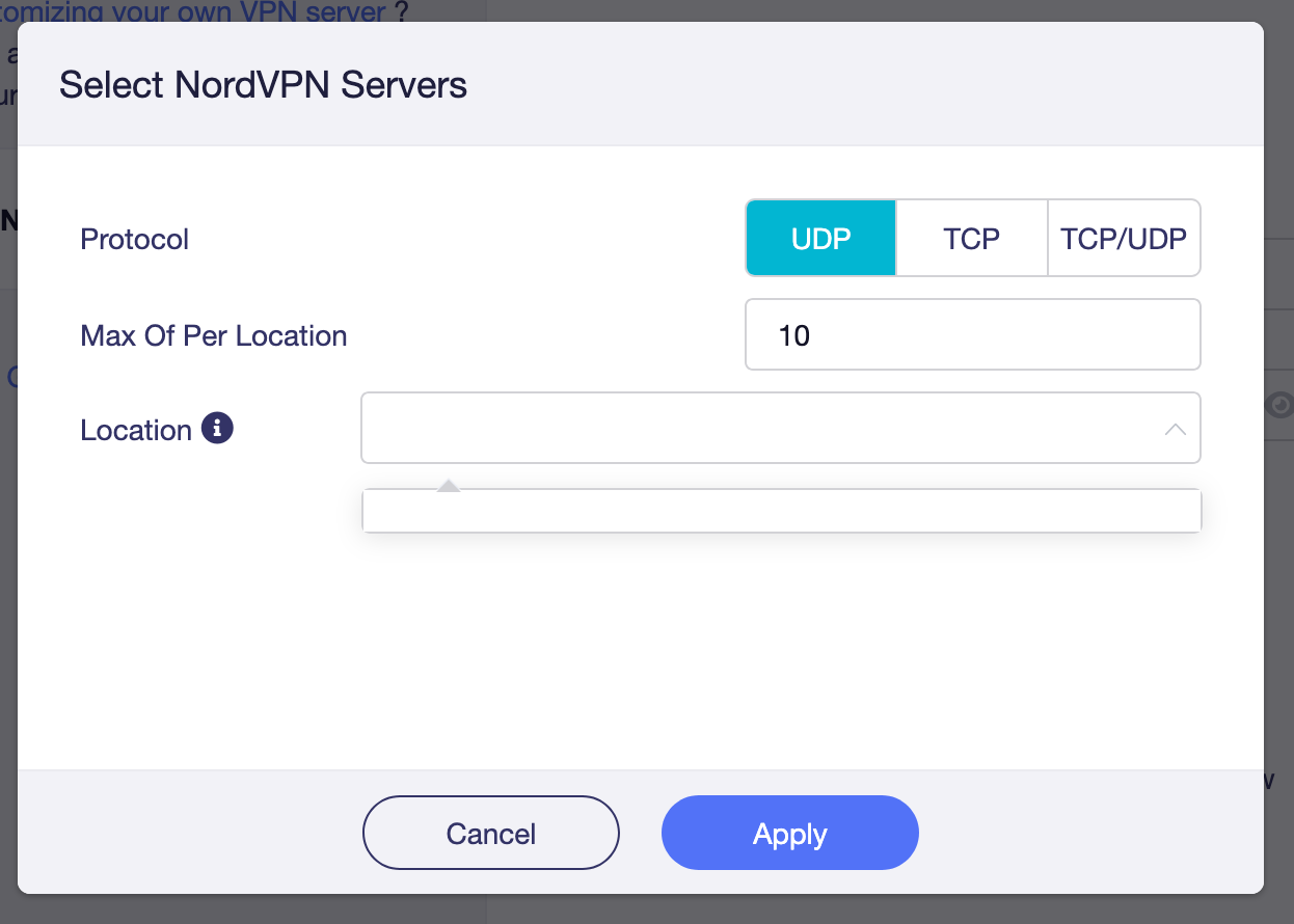 So ... trying to set up my travel router with NordVPN. I did this without issue about a year ago but now I am hitting a wall. There are no server locations available for me to select.