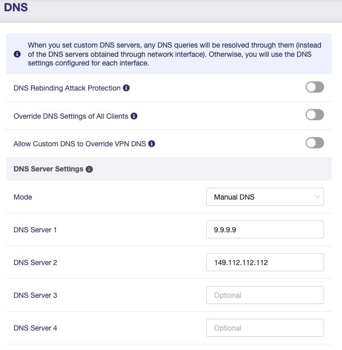 This is already disabled - note the custom DNS is set at the LAN/DHCP level, not the WAN DNS settings (as per screenshots).