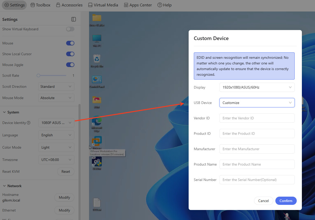 My use case requires hiding or anonymizing the KVM device (USB and HDMI) from enterprise detection mechanisms on the endpoint. On PiKVM, this involved: