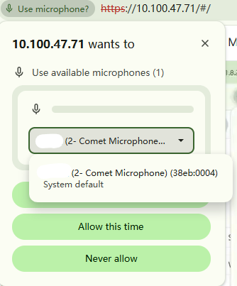 Could you try restarting both the KVM device and the controlled computer? This will trigger the microphone permission request again and may help resolve the issue.