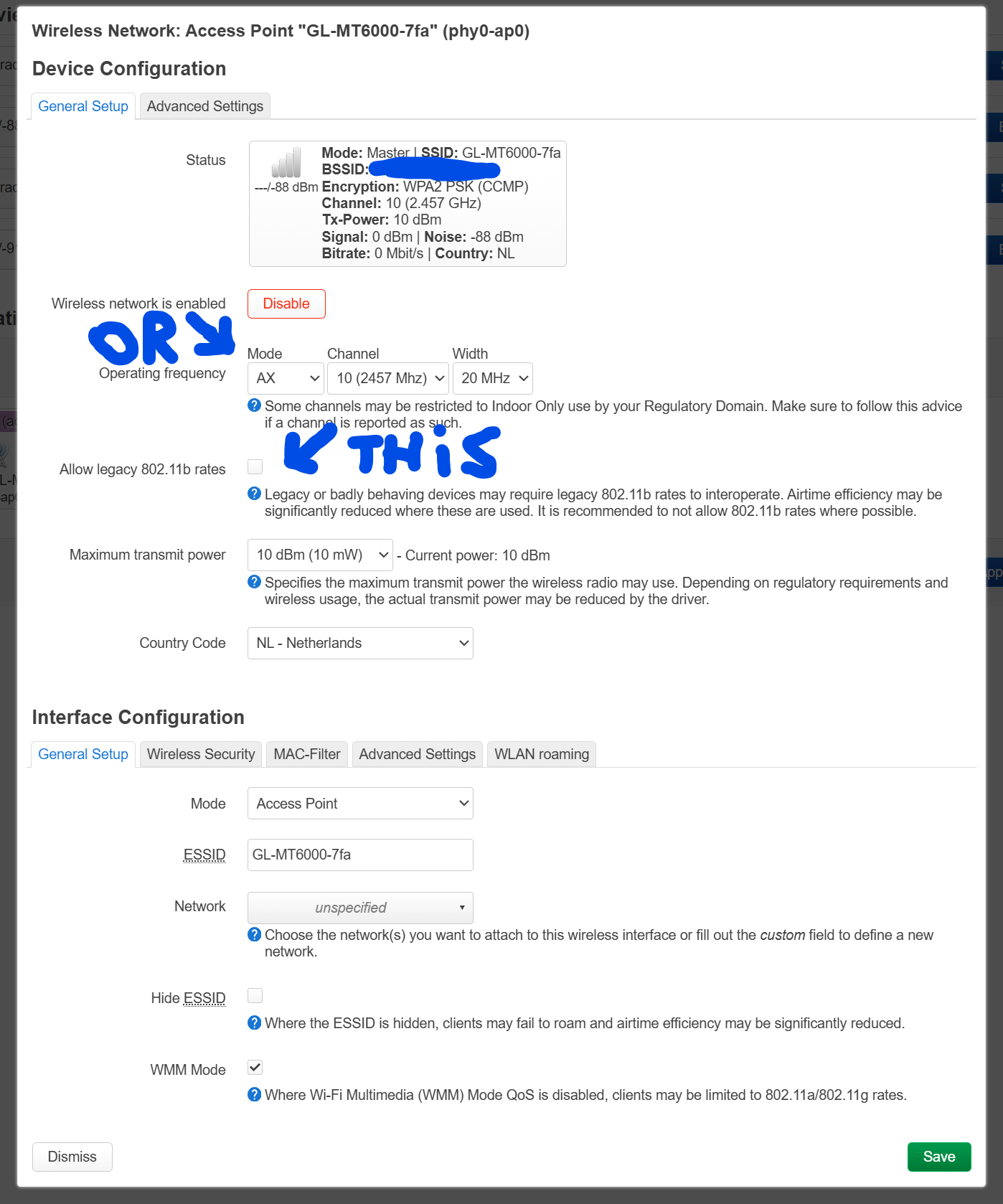 Mon Feb 16 12:28:28 2026 daemon.info hostapd: wlan1: STA b6:43:e5:d5:7c:77 IEEE 802.11: disconnected due to excessive missing ACKs