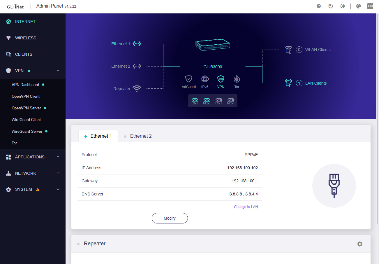 After disabling the OpenVPN server on the b3000 the speed becomes normal…