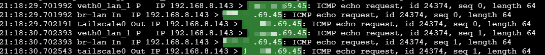Masquerading (SNAT): When we enable Masquerading in the tailscale0 firewall zone—which translates the LAN source address to the router's Tailscale IP—the target server responds successfully.