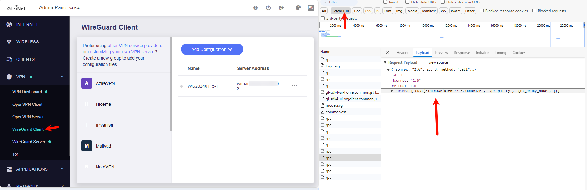 {"jsonrpc":"2.0","id":137,"method":"call","params”:[“...”,”wg-client","get_status",{}]}