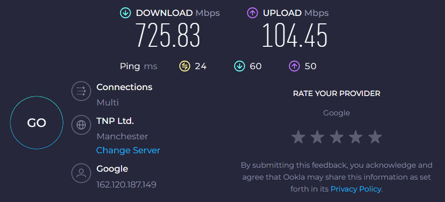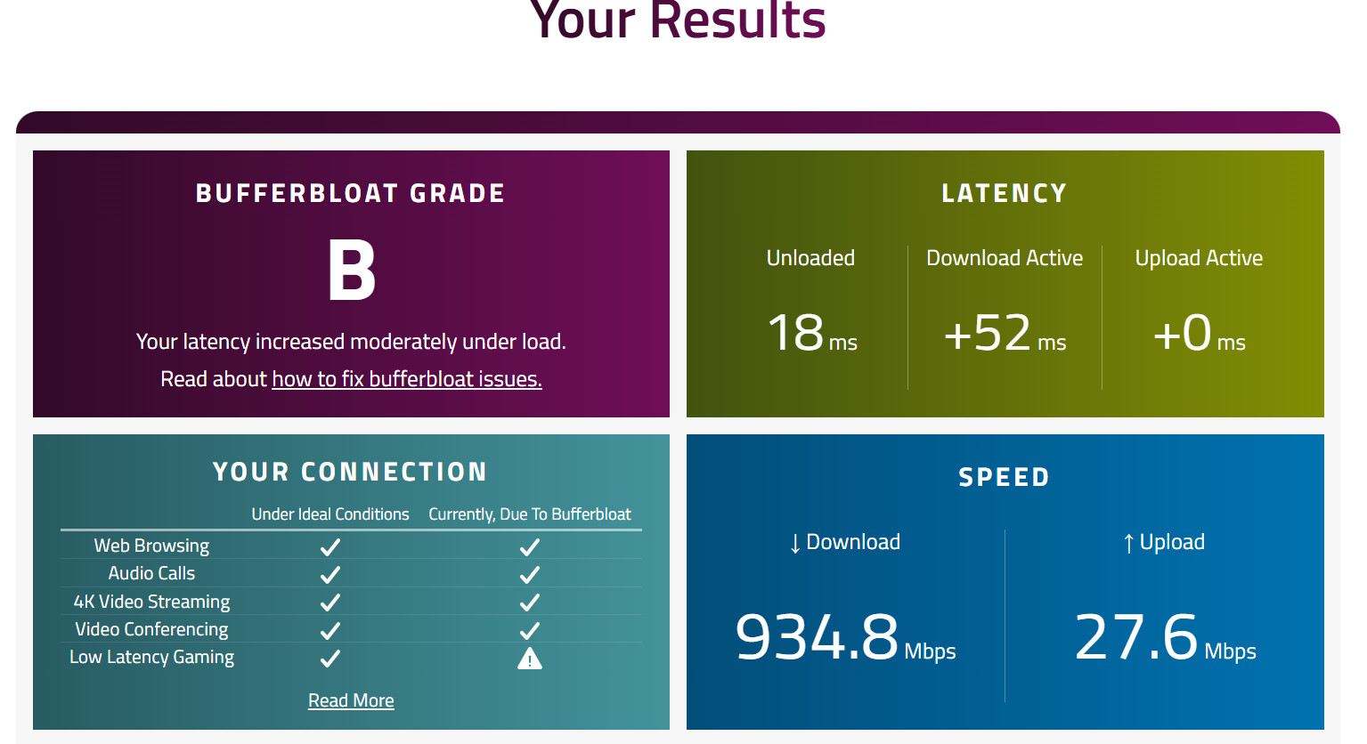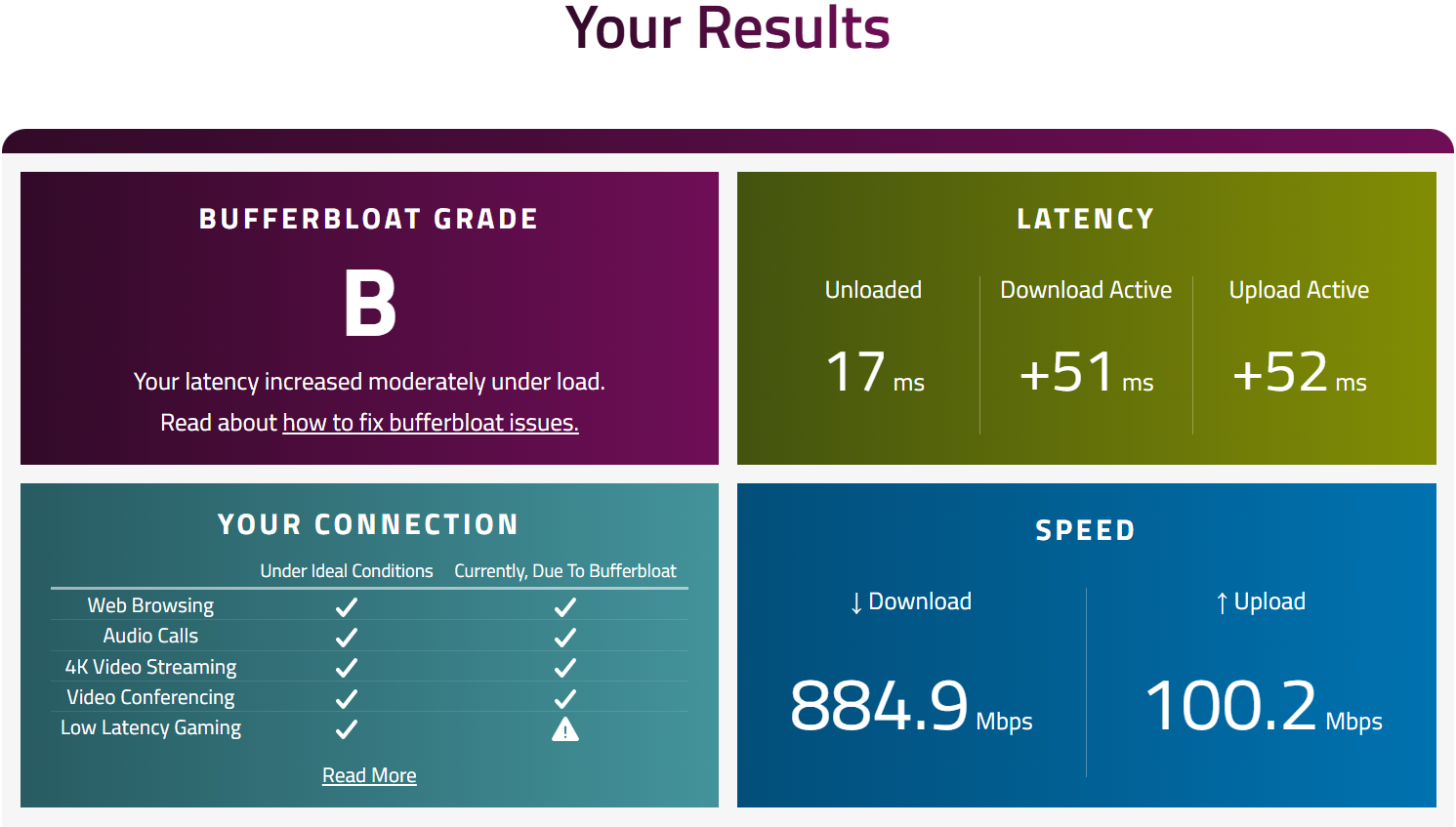 Thanks for the replies all. My download is roughly 1gb and upload is 100mb any ideas what figure to put in the boxes at all please to get an A+ rating?