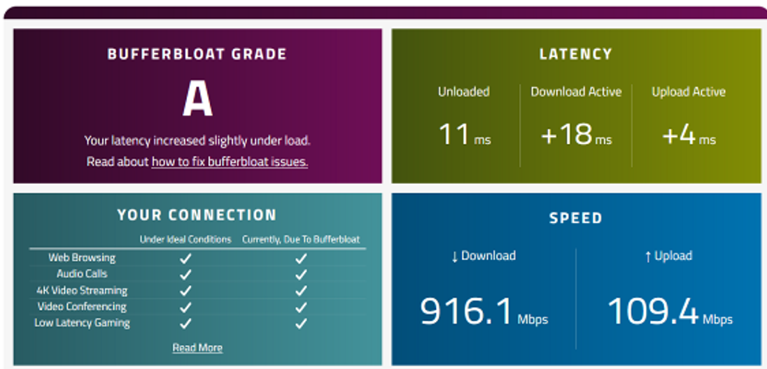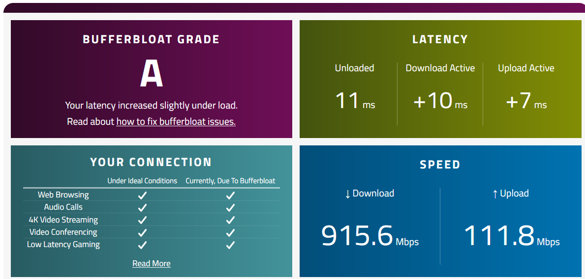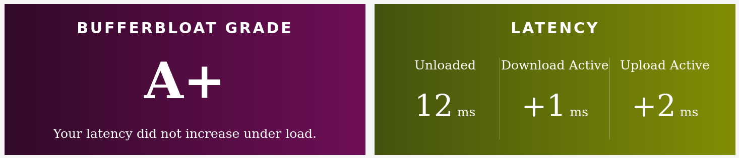 This matters as I can have the same result by limiting the download and upload a lot ofcourse, but my goal is to have the highest throughput (upload/download) but to keep latency low (A+ score).