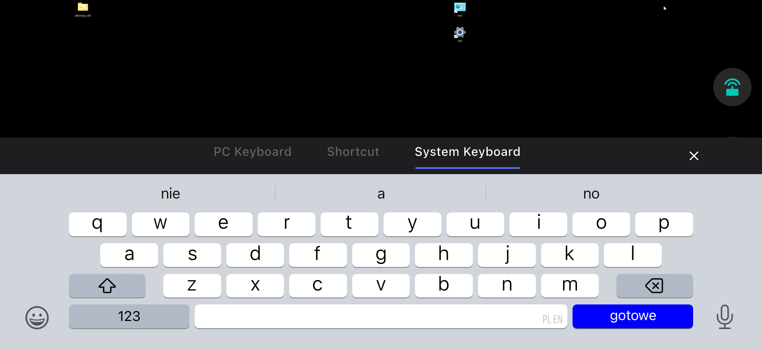 or at least add some input text field (to paste to remote device like its done in windows app) where you can use mobile keyboard with full functionality