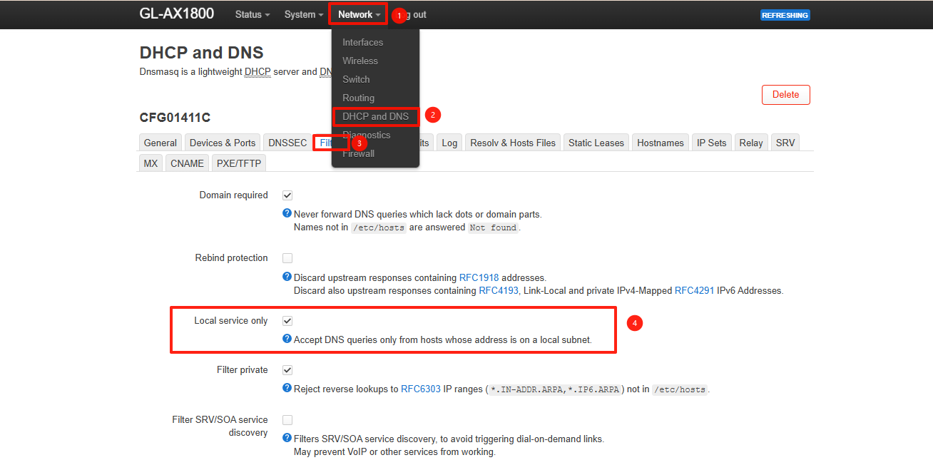 But if you just want other Tailscale Nodes to use AX1800 as their DNS server, you may try configuring: