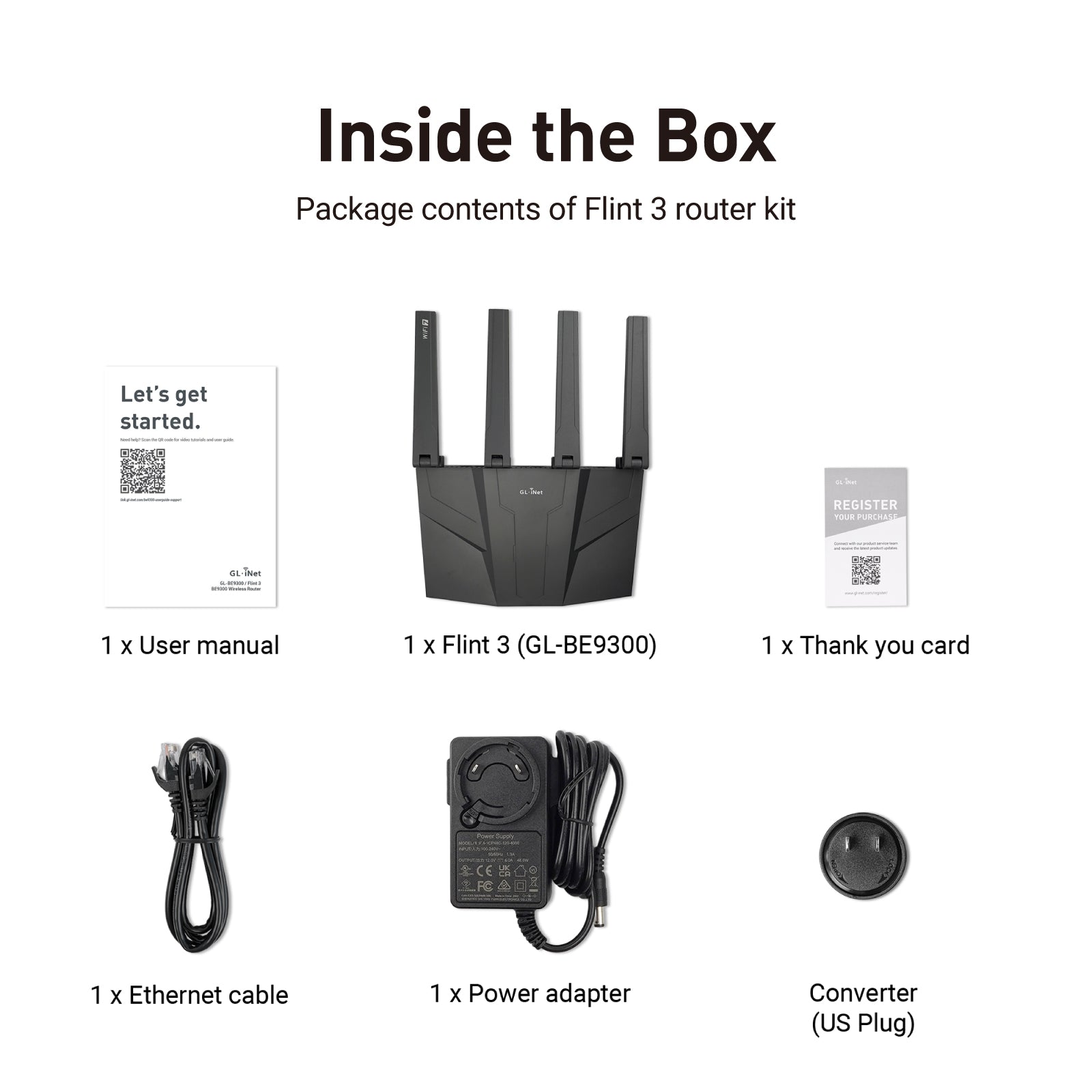Third, the user guide, GL-RM1 (Comet) - GL.iNet KVM Docs Please the inventory for what is (should be) in the box, and this applies to all of the products.. As an example, I didn't know it came with the power adapter, USB cables, HDMI cable, and network cable. I ordered these separately because nothing said they were included. This page Flint 3 (GL-BE9300)Tri-band Wi-Fi 7 Home Router — GL.iNet has an "In the Box" picture https://store.gl-inet.com/cdn/shop/files/17---US---Inside-the-Box---BE9300_1600x1600.jpg as an example but the documentation doesn't, the Comet doesn't have that at all.