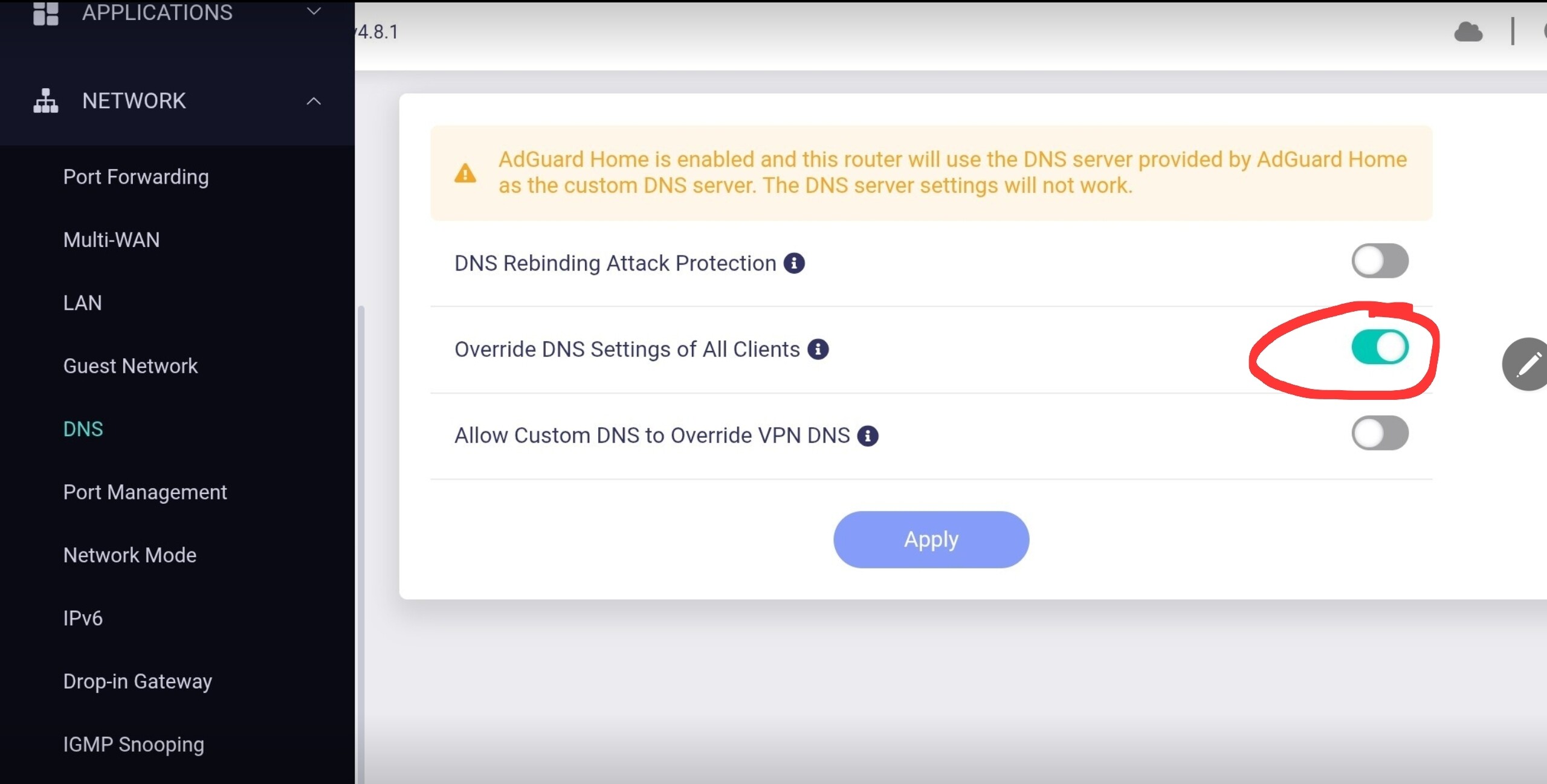 If this can easily be done, I guess I'll have no choice but to remove the TV from the Beryl and move it back to another wireless network so that its custom DNS isn't blocked.