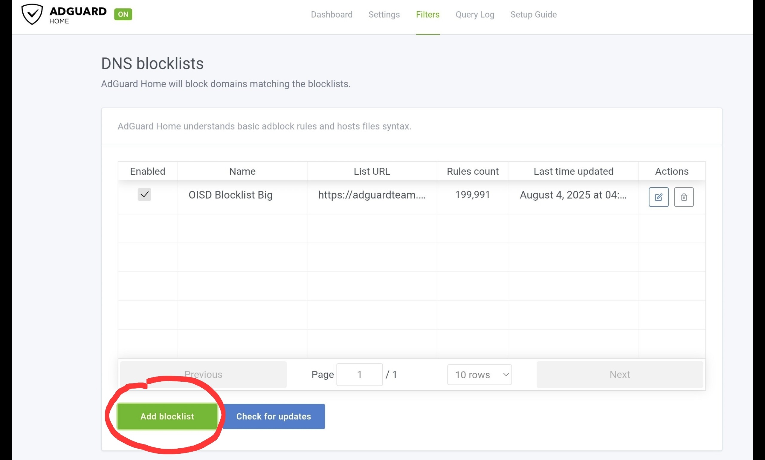 AGH will refuse to load a site, if it's in the blocklist selected on the Filters tab.