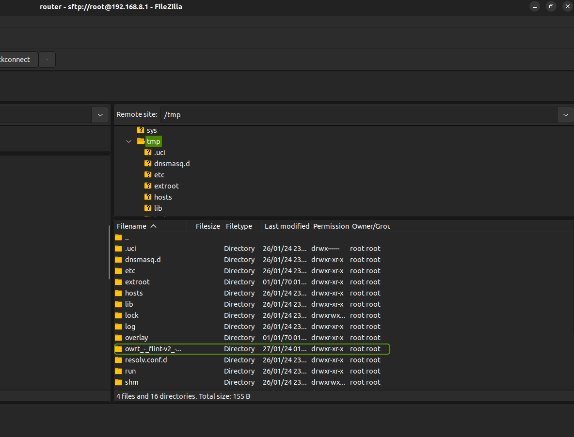 For my own piece of mind let’s delete everything & run this as if it was an all brand new attempt. Ubuntu: download → scp/FileZilla → OWRT /tmp/ → OWRT: install . You know the drill. ![]()